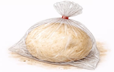 Fresh, 24+ hr Fermented Pizza dough ready to take and bake